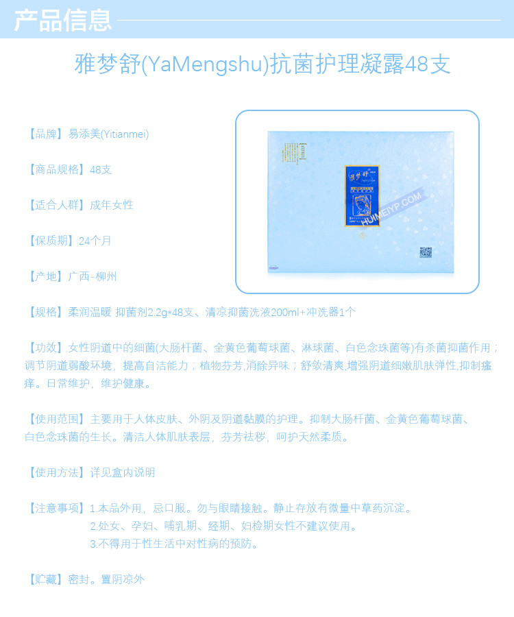 雅梦舒(YaMengshu)护理抗菌凝露48支