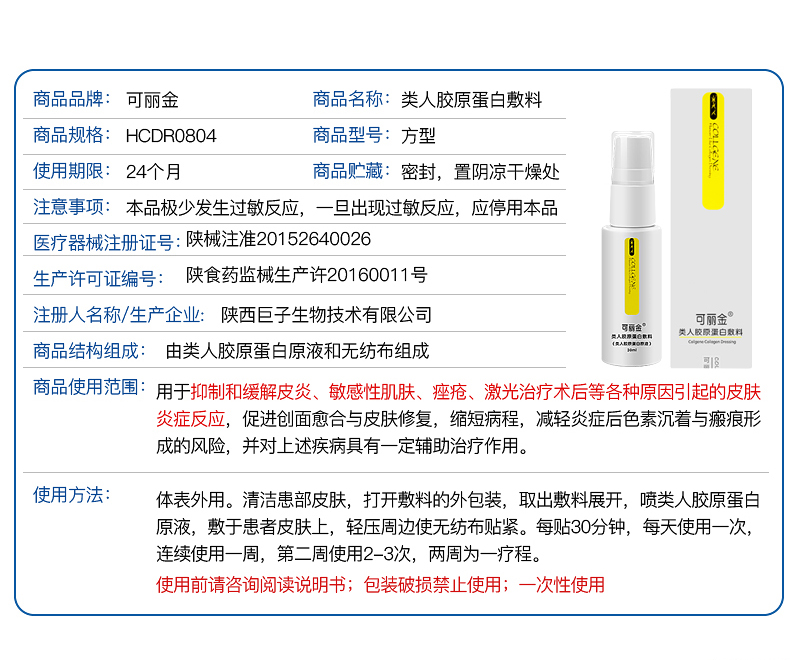 可丽金(COLLGENE)类人胶原蛋白敷料30ml
