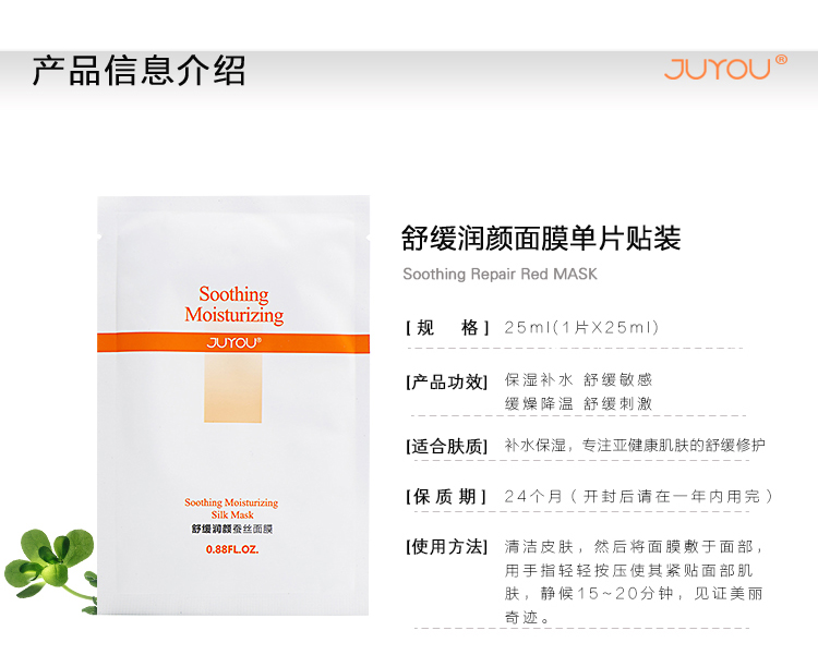 绽妍(JUYOU)舒缓润颜蚕丝面膜5片