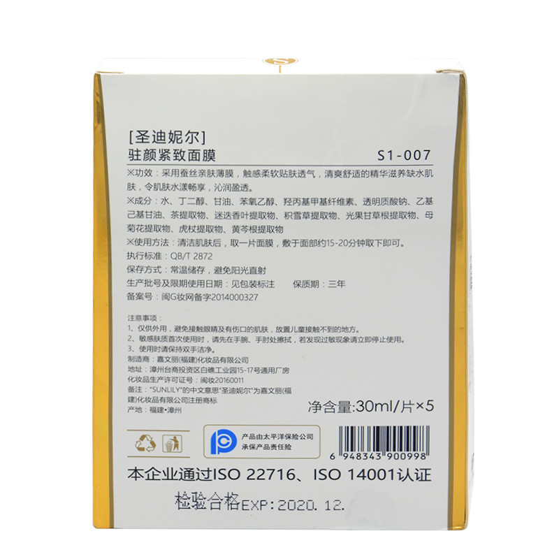 圣迪妮尔(SUNLILY)驻颜紧致面膜30ml×5片(日常护理)