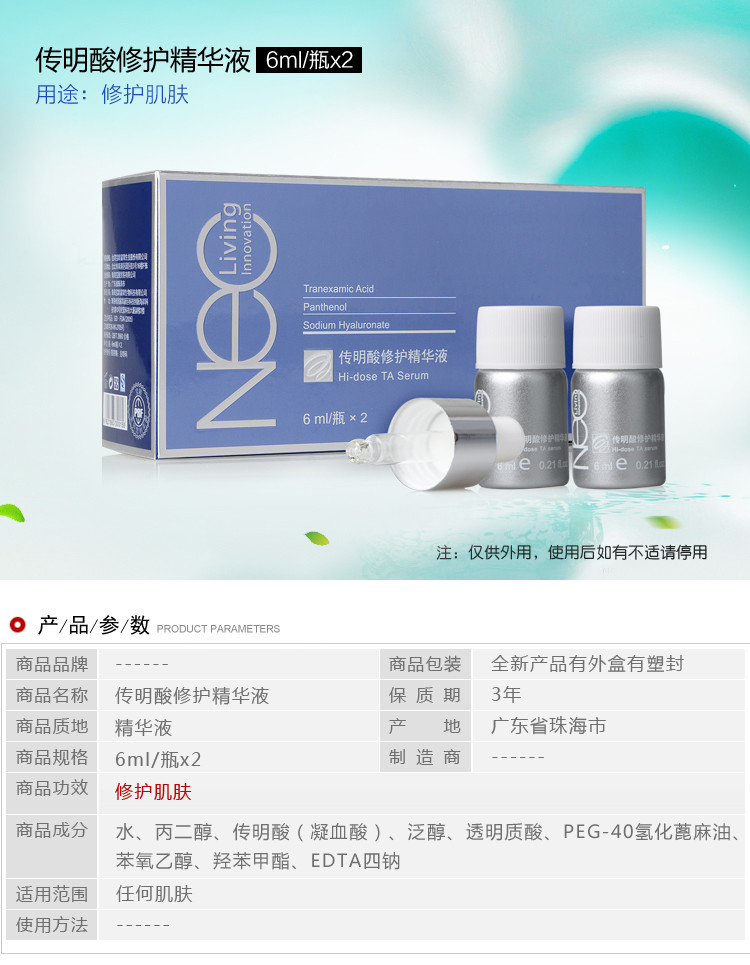 宝龄优丽雅Nec_Living传明酸修护精华液6ml*2瓶