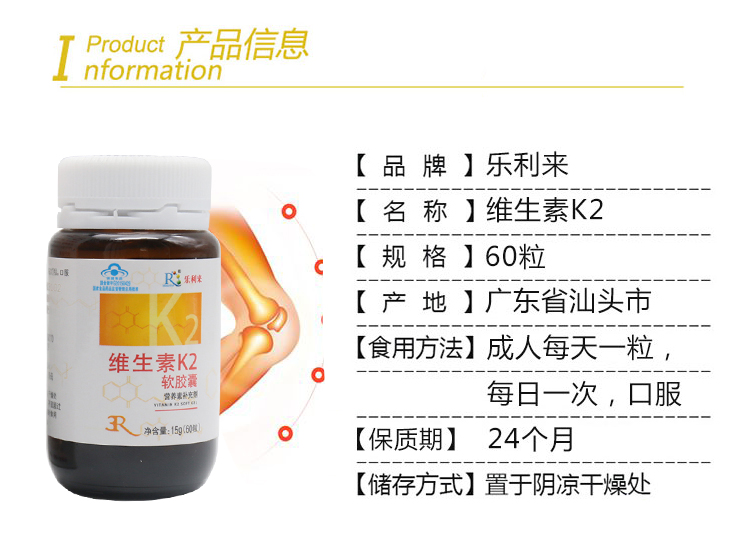 乐利来(LeRoy)钙维生素D维生素K 60粒(原:维生素k2)