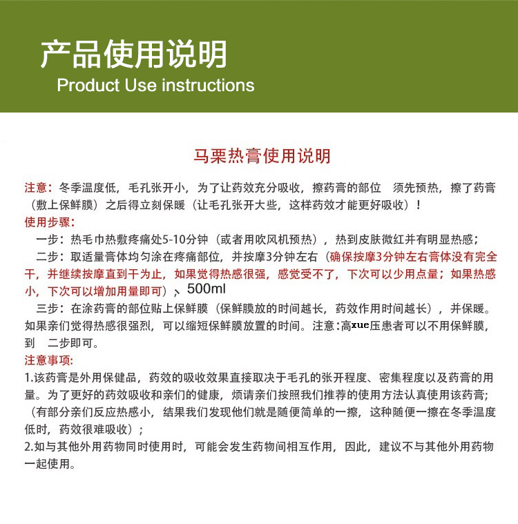 草本庄园马栗乐按摩凝胶马膏500ml