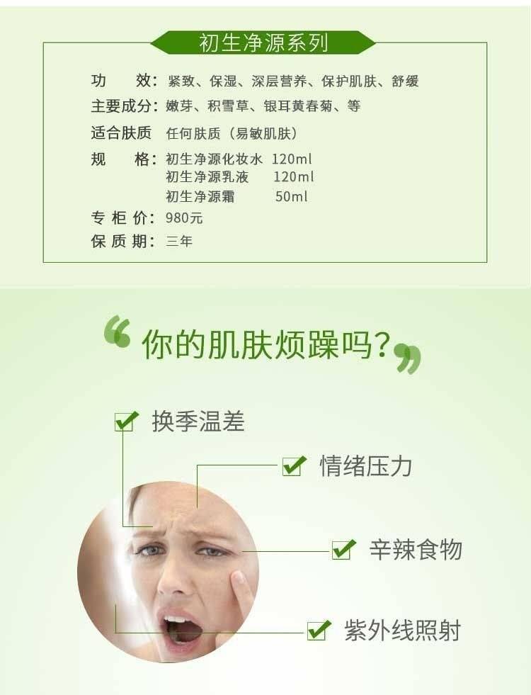 包装好看很清新,看着很舒服,产品质感不错,适合各种肤质,是我喜欢用的产品效果不错,用后皮肤很滋润,也不油腻,值得购买。
