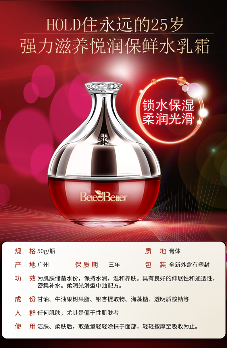 悦来悦好(BeteeBetter)悦润保鲜水乳霜50g(柔润光滑型)