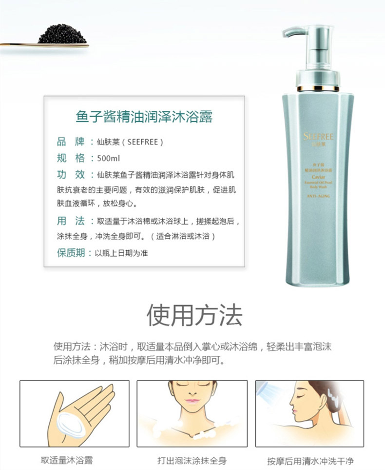 仙肤莱(SEEFREE)鱼子酱精油润泽沐浴露500ml