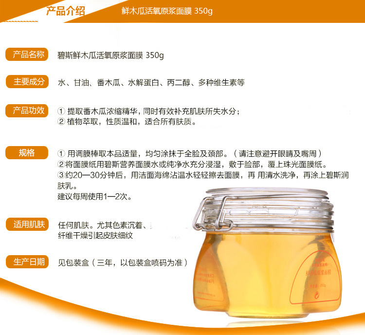 碧斯(BESTCARE)鲜木瓜原浆面膜350g