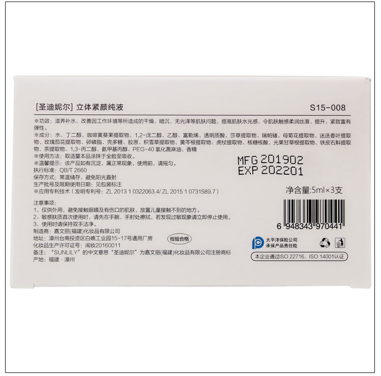 圣迪妮尔(SUNLILY)立体紧颜纯液5ml×3瓶/盒(女神水)