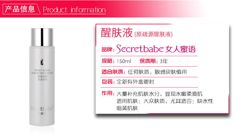 女人蜜语(Secretbabe)疏源醒肤液150ml