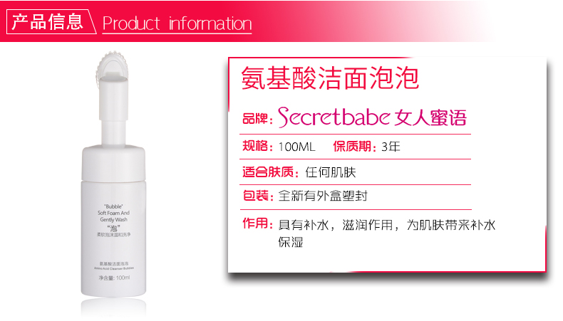 女人蜜语(Secretbabe)氨基酸洁面泡泡100ml
