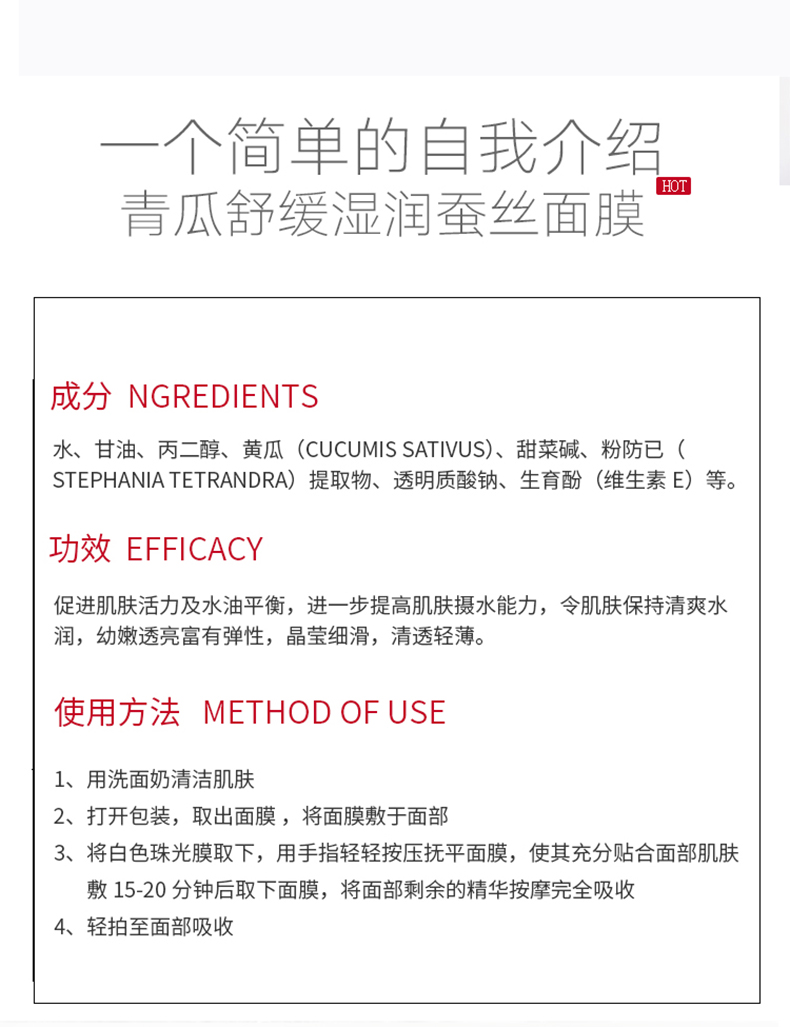 麦拉宁(MALAING)青瓜舒缓湿润蚕丝面膜10片