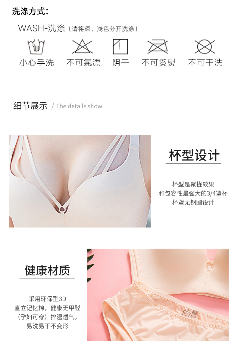 向大大 无钢圈聚拢蜜桃交叉性感薄款透气内衣套装