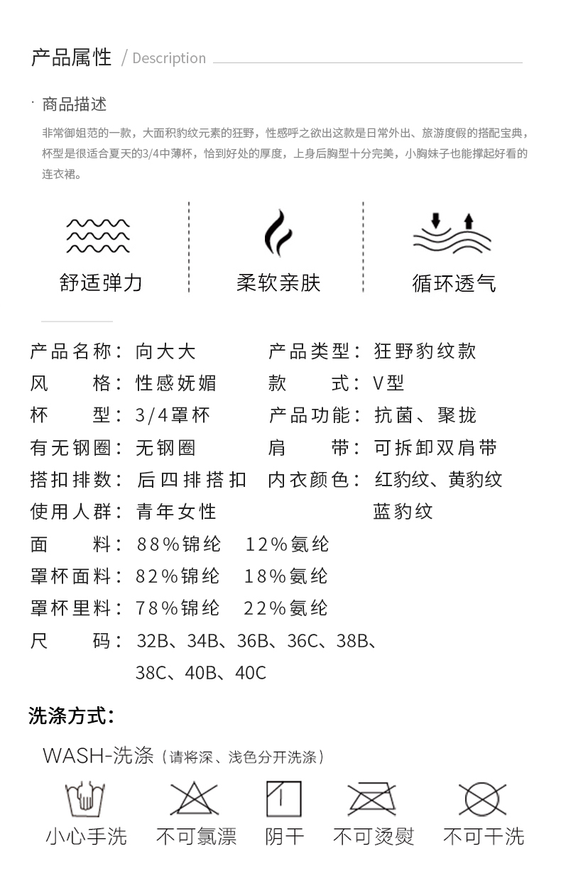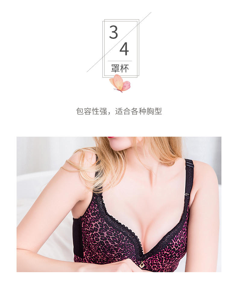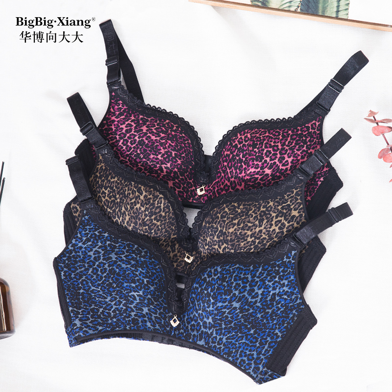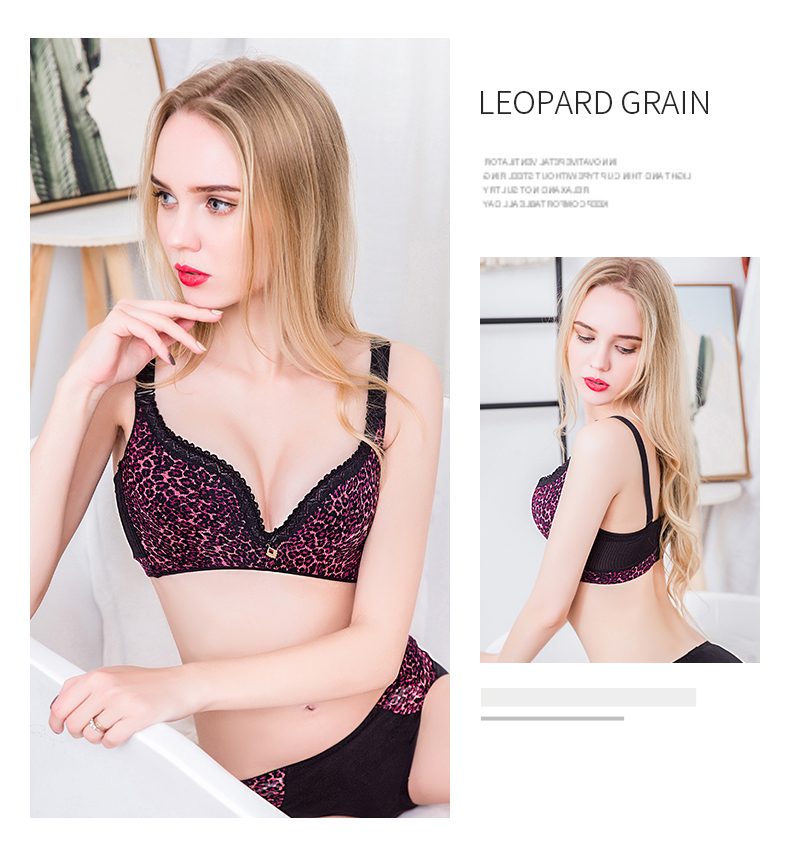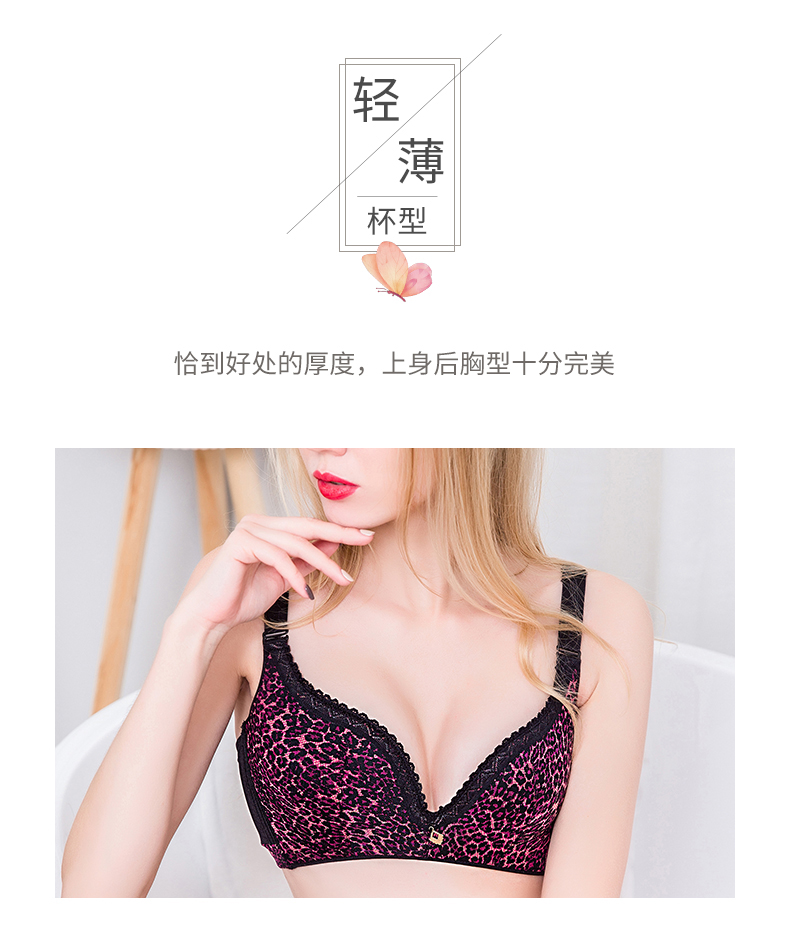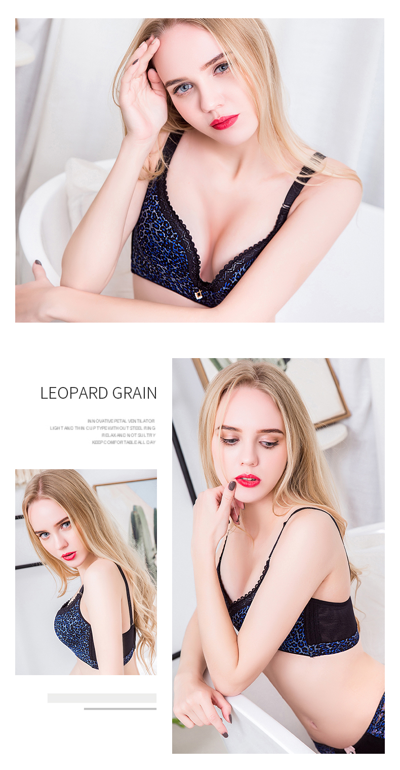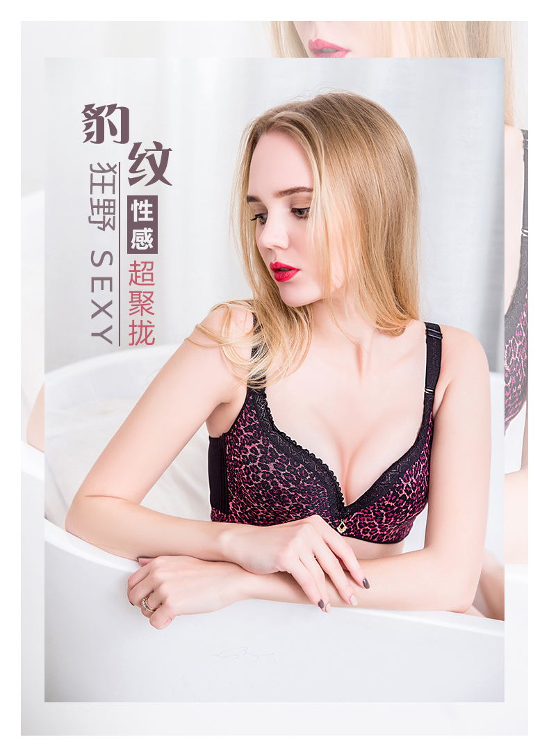 向大大 无钢圈豹纹性感聚拢收副乳内衣薄款套装