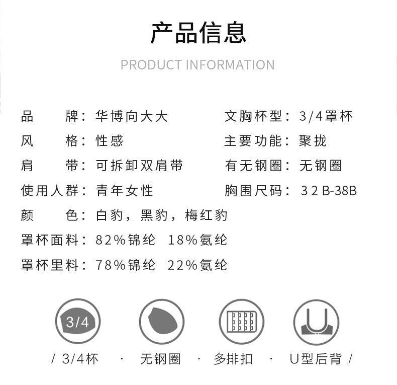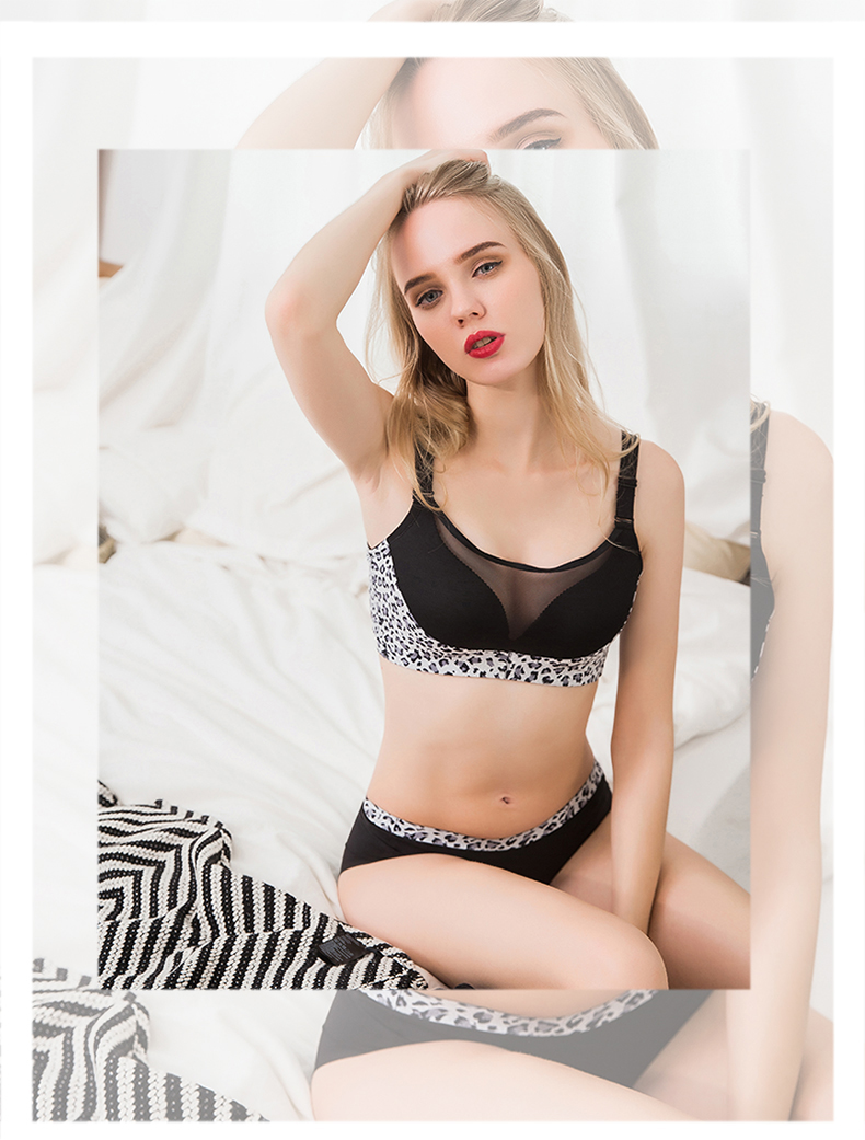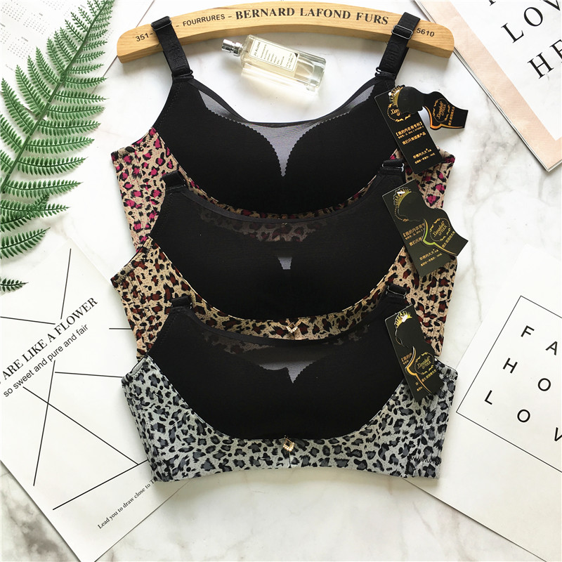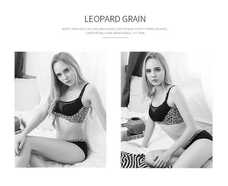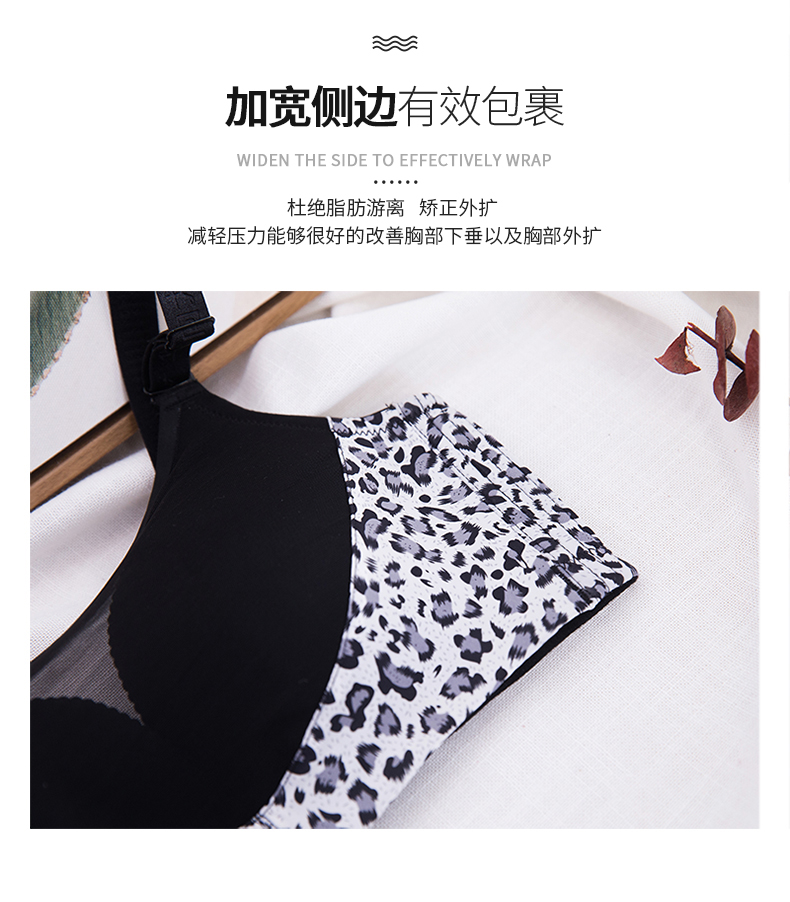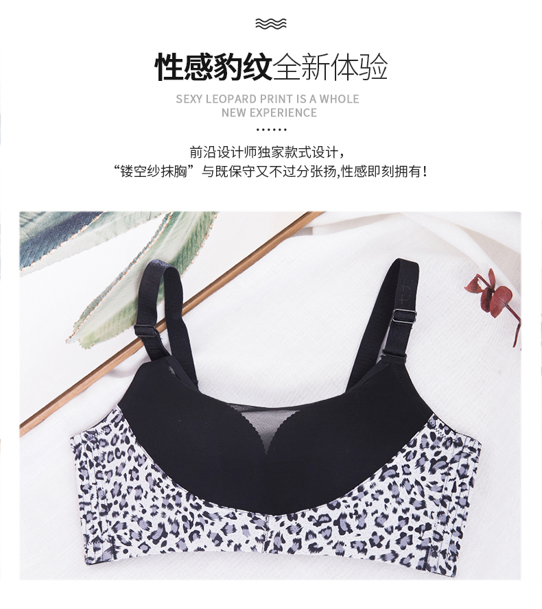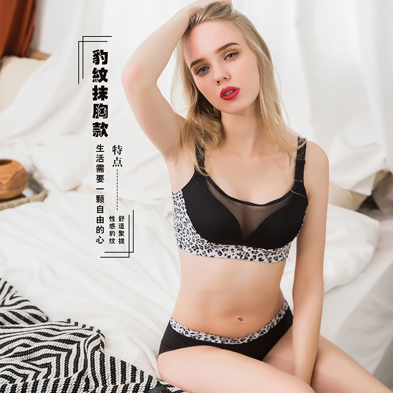 向大大 无钢圈秋冬超厚罩杯性感聚拢收副乳内衣套装(豹纹抹胸款)