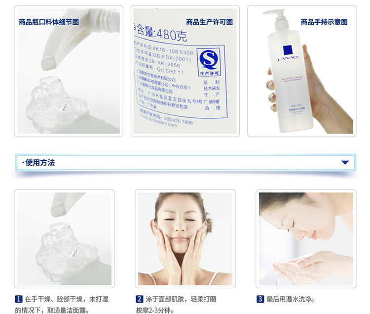 朗斯(LANACE)氨基酸亲肤洁面露480g