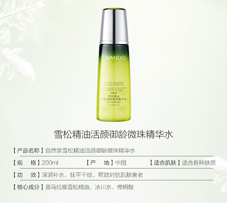 自然堂(CHANDO)雪松精油活颜御龄微珠精华水200ml
