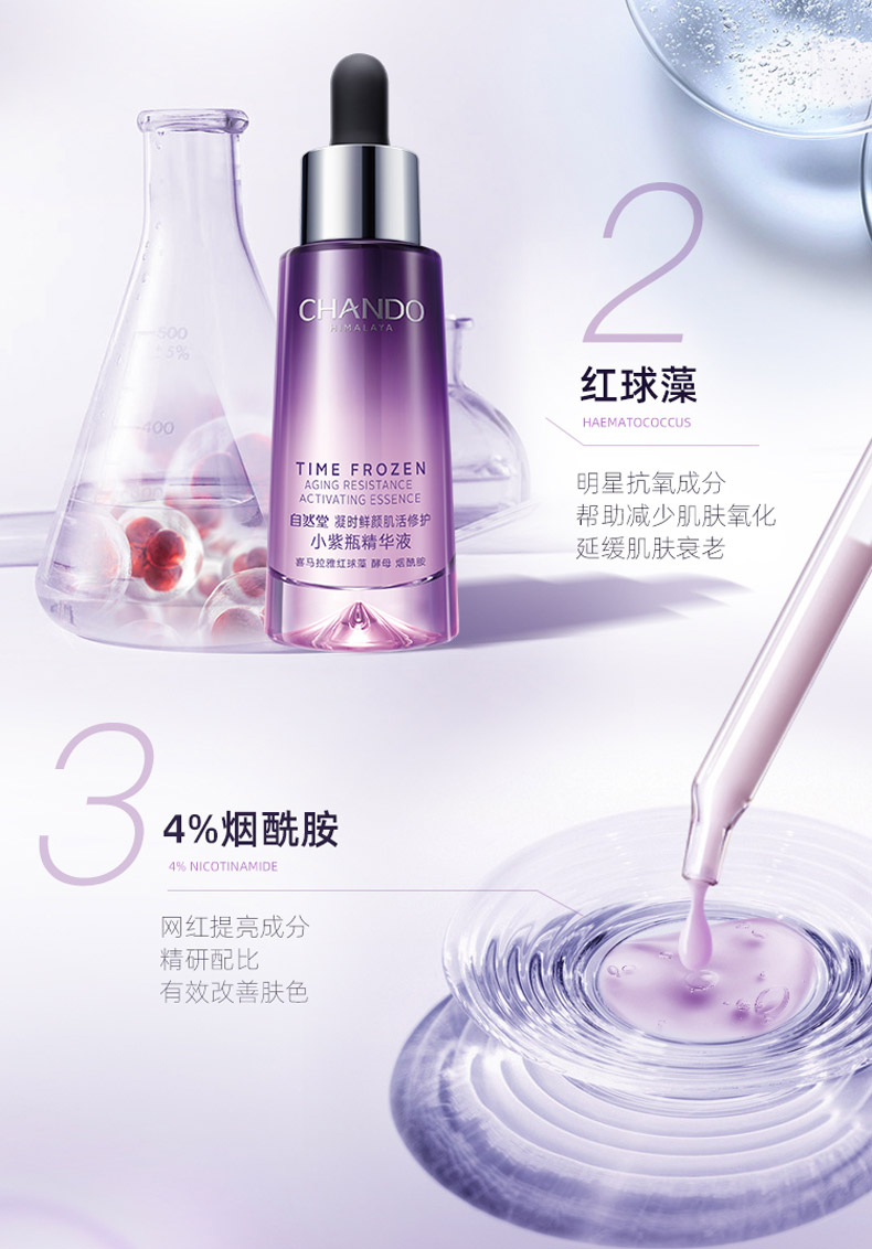 自然堂(CHANDO)凝时鲜颜肌活修护精华液35ml(小紫瓶)