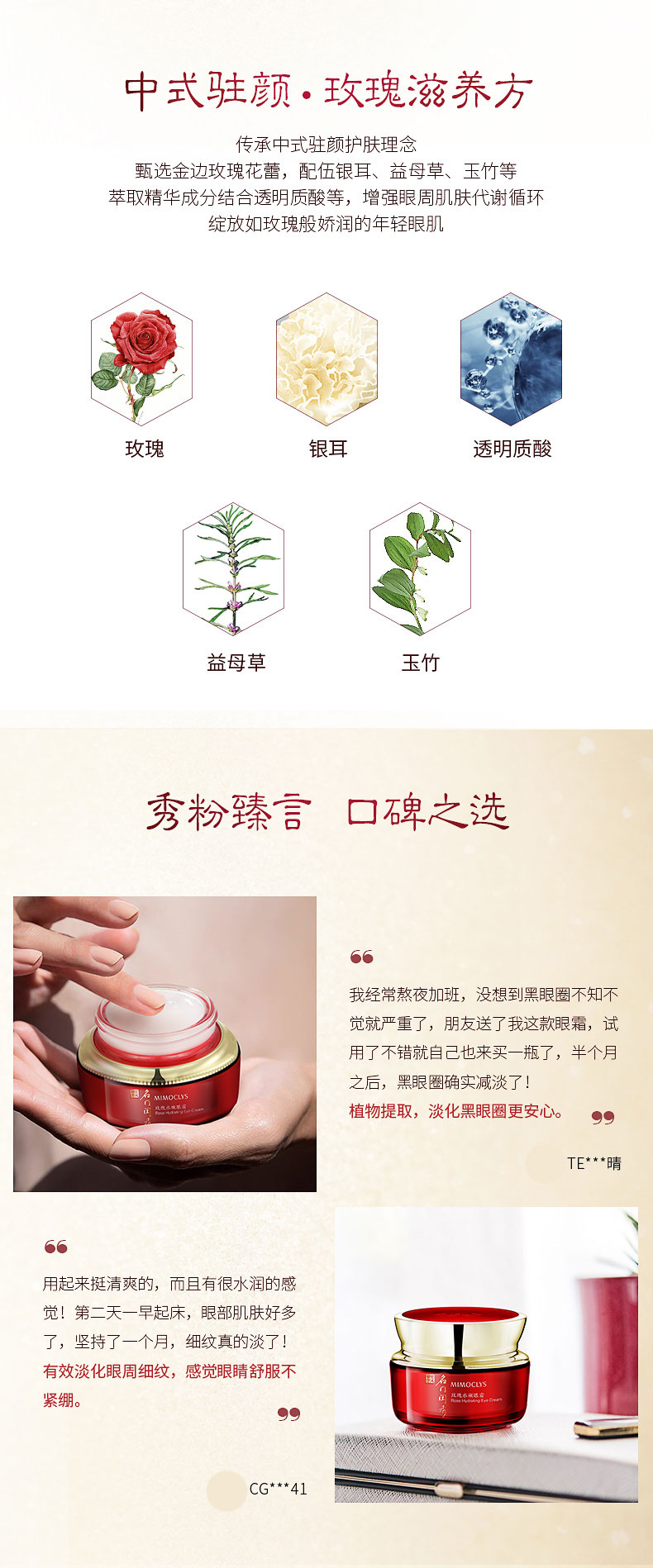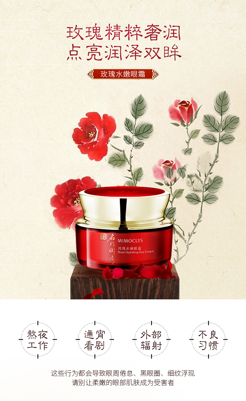 名门闺秀(MIMOCLYS)玫瑰水嫩眼霜15g