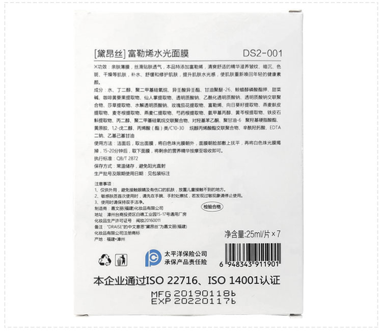 黛昂丝(DRAISE)富勒烯水光面膜25ml*7片