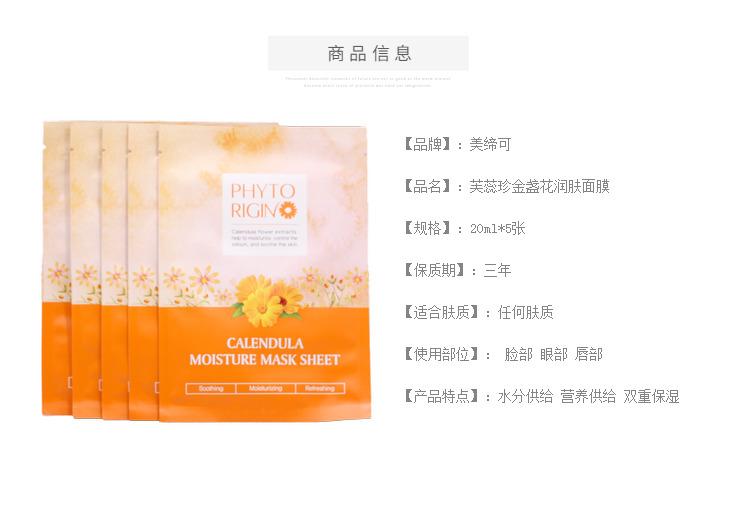 芙蕊珍(PHYTO_RIGIN)金盏花润肤面膜20ml*5片