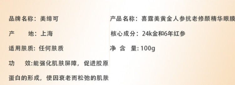 喜露美 黄金人参抗老修颜精华眼膜100g
