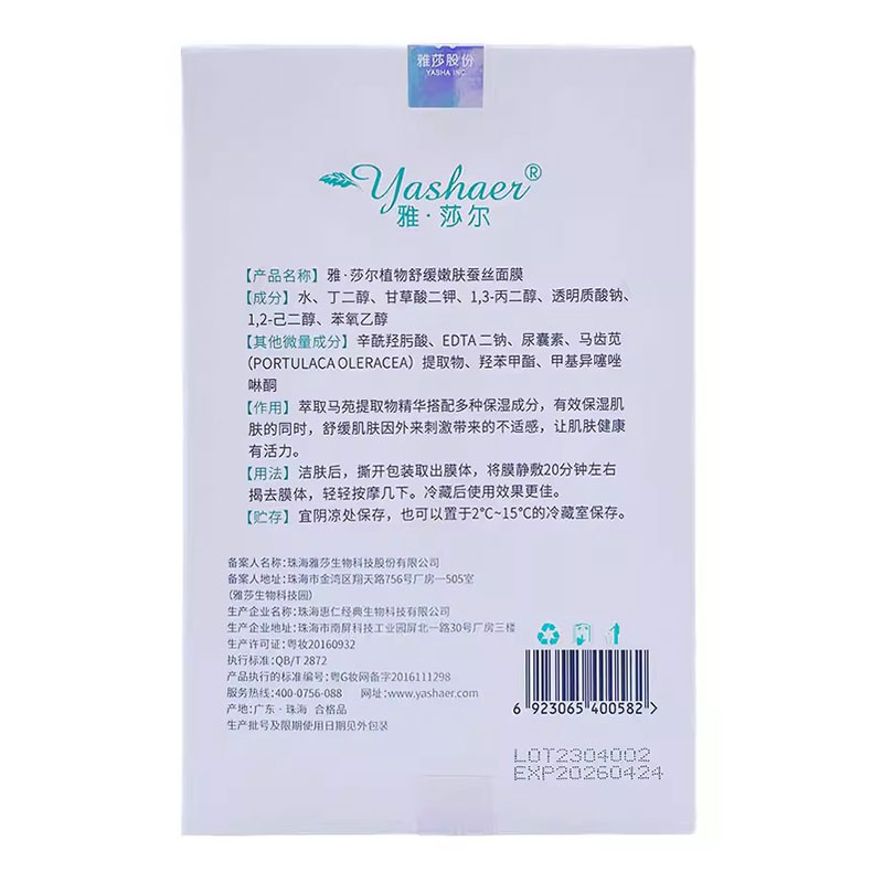 雅莎尔(yashaer)植物舒敏嫩肤蚕丝面膜30g×5片