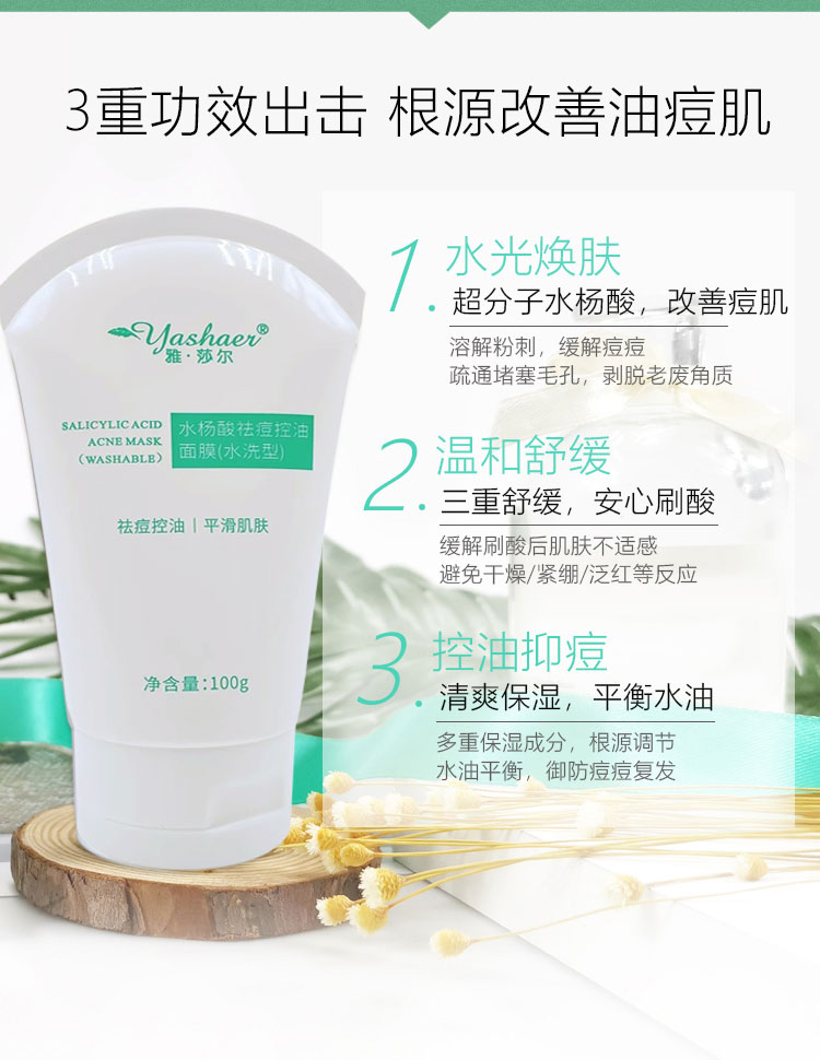 雅莎尔(yashaer)水杨酸祛痘控油面膜100g