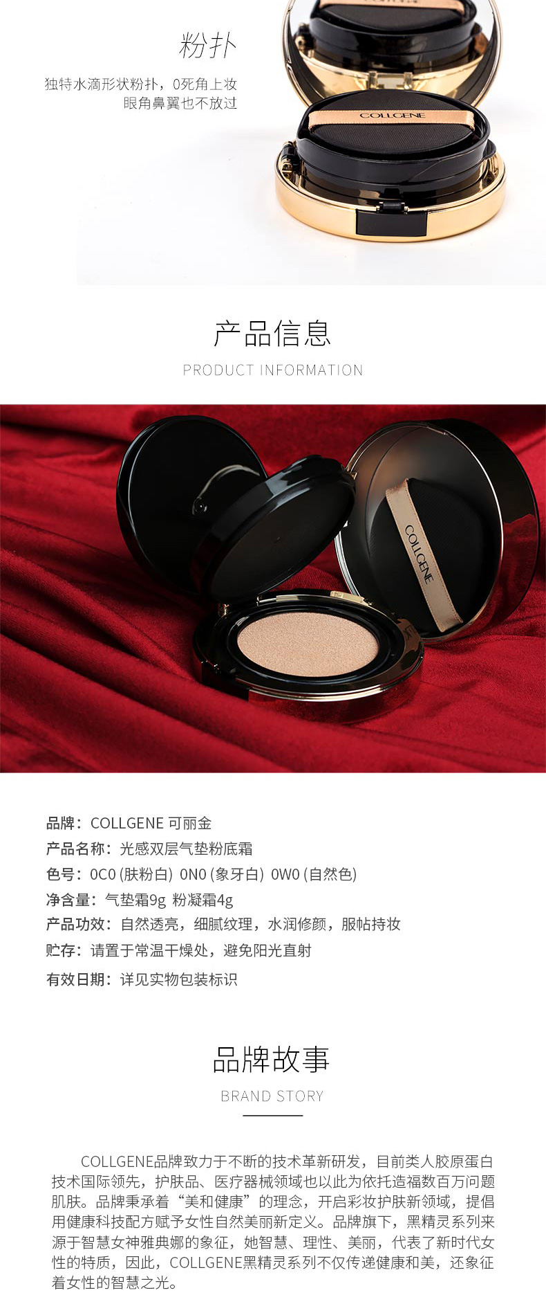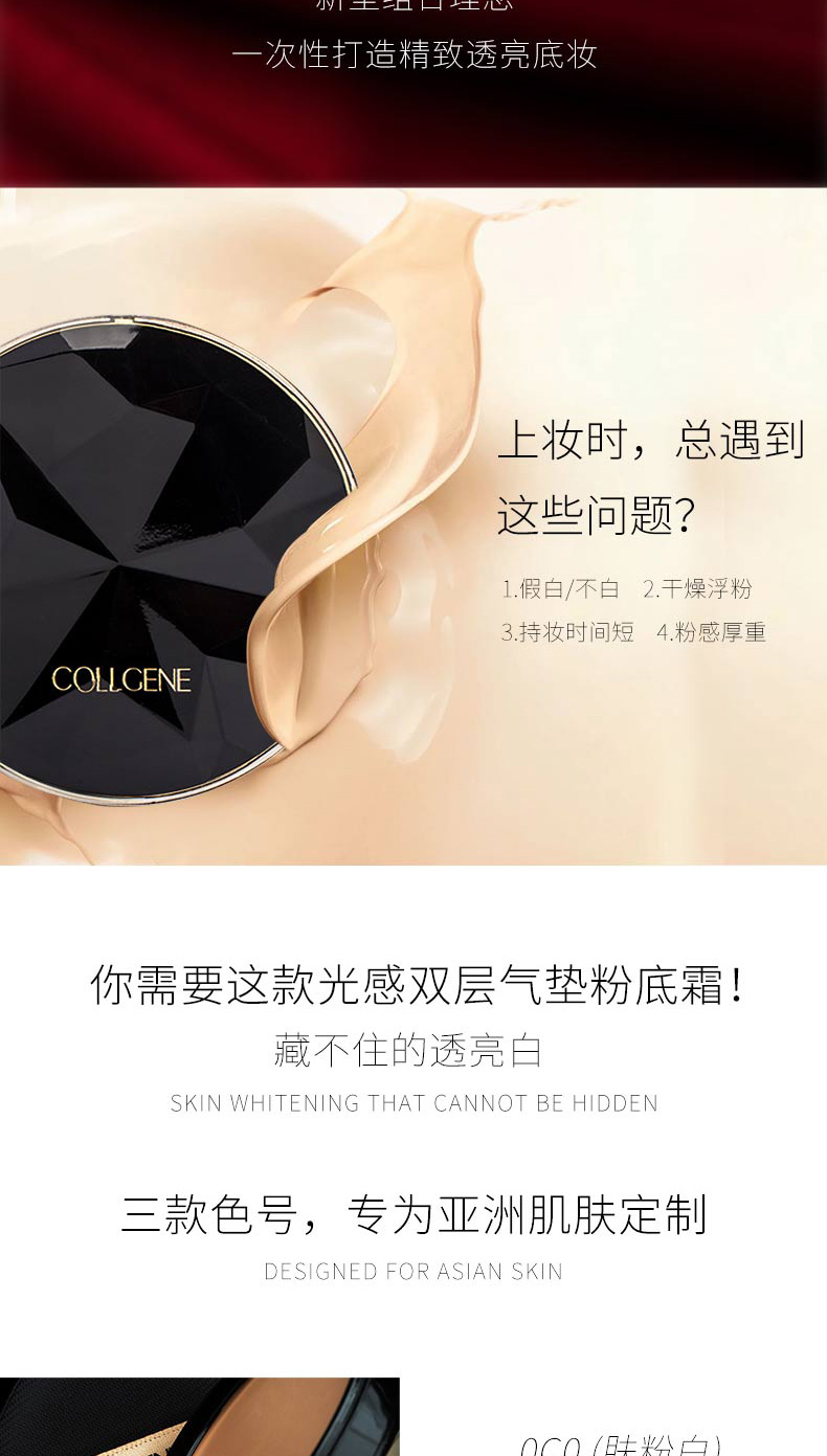 可丽金(COLLGENE)光感双层气垫粉底霜(自然色 象牙白 肤粉白)
