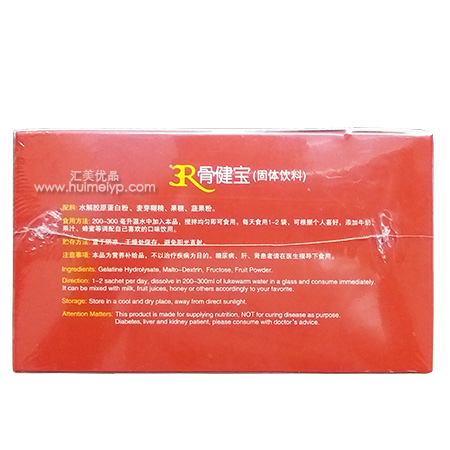 水解胶原蛋白也就是经过水分解的胶原蛋白,分子量极低,3000道尔顿且易溶于水,可被人体快速吸收,12小时之内到达全身各处软骨,能够真正的促进骨骼与关节部位的软骨、骨骼周边组织修复再生,它能在几个星期之内有效的减轻关节疼痛!已成为目前国际上骨骼与关节疾病康复中不可替代的产品。配料为水解明胶、麦芽糊精、疏果粉、果糖、葡萄糖酸锌等。