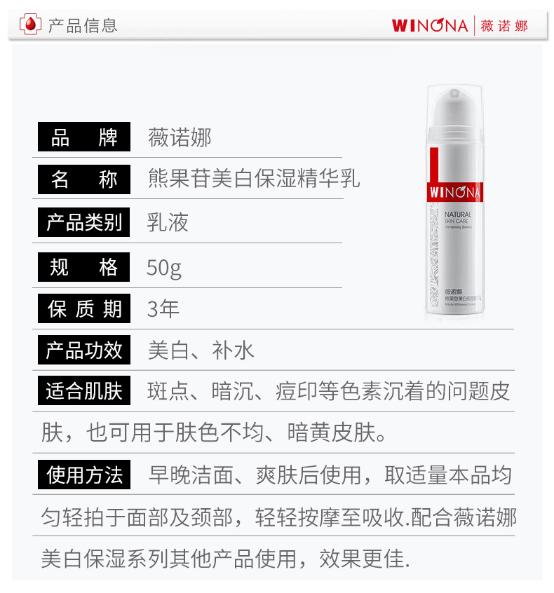 薇诺娜(WINONA)熊果苷美白保湿精华乳50g