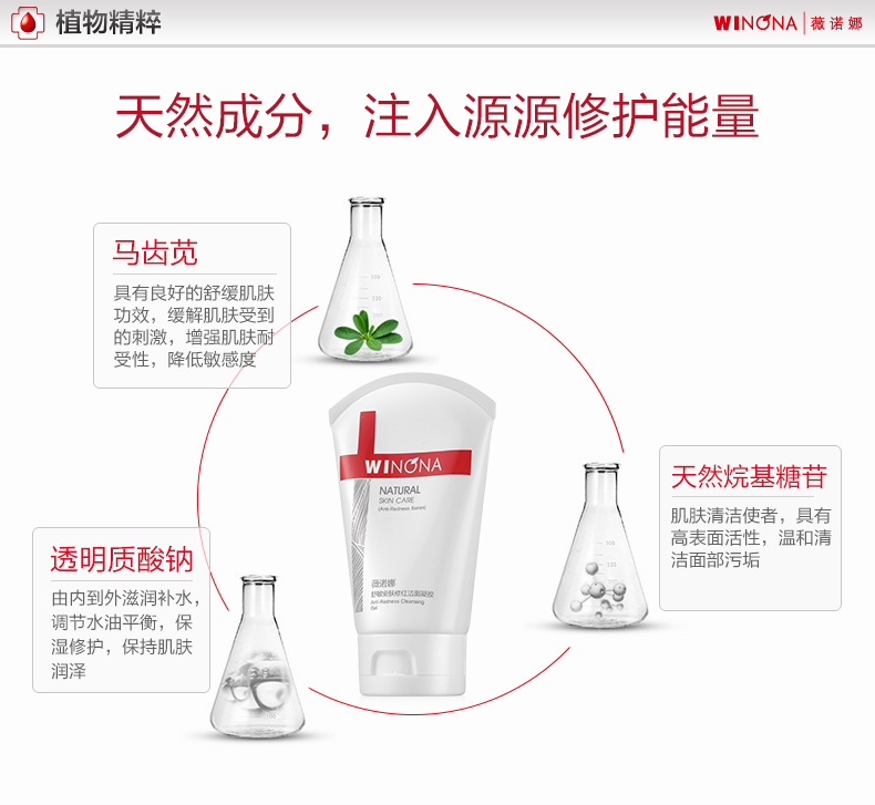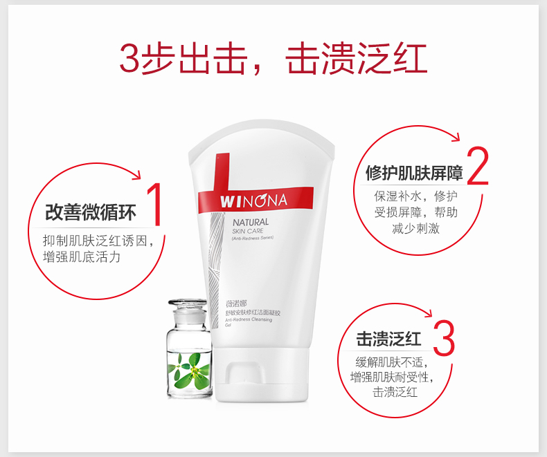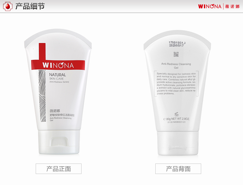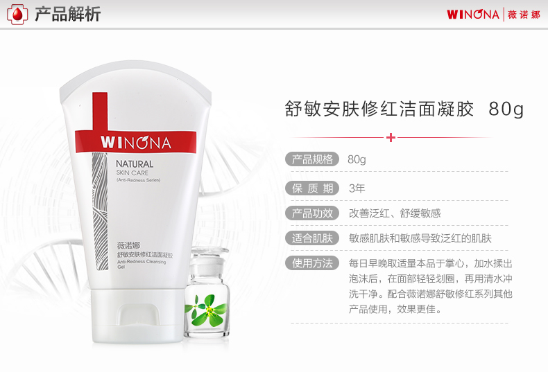 薇诺娜(WINONA)舒敏安肤修红洁面凝胶80g