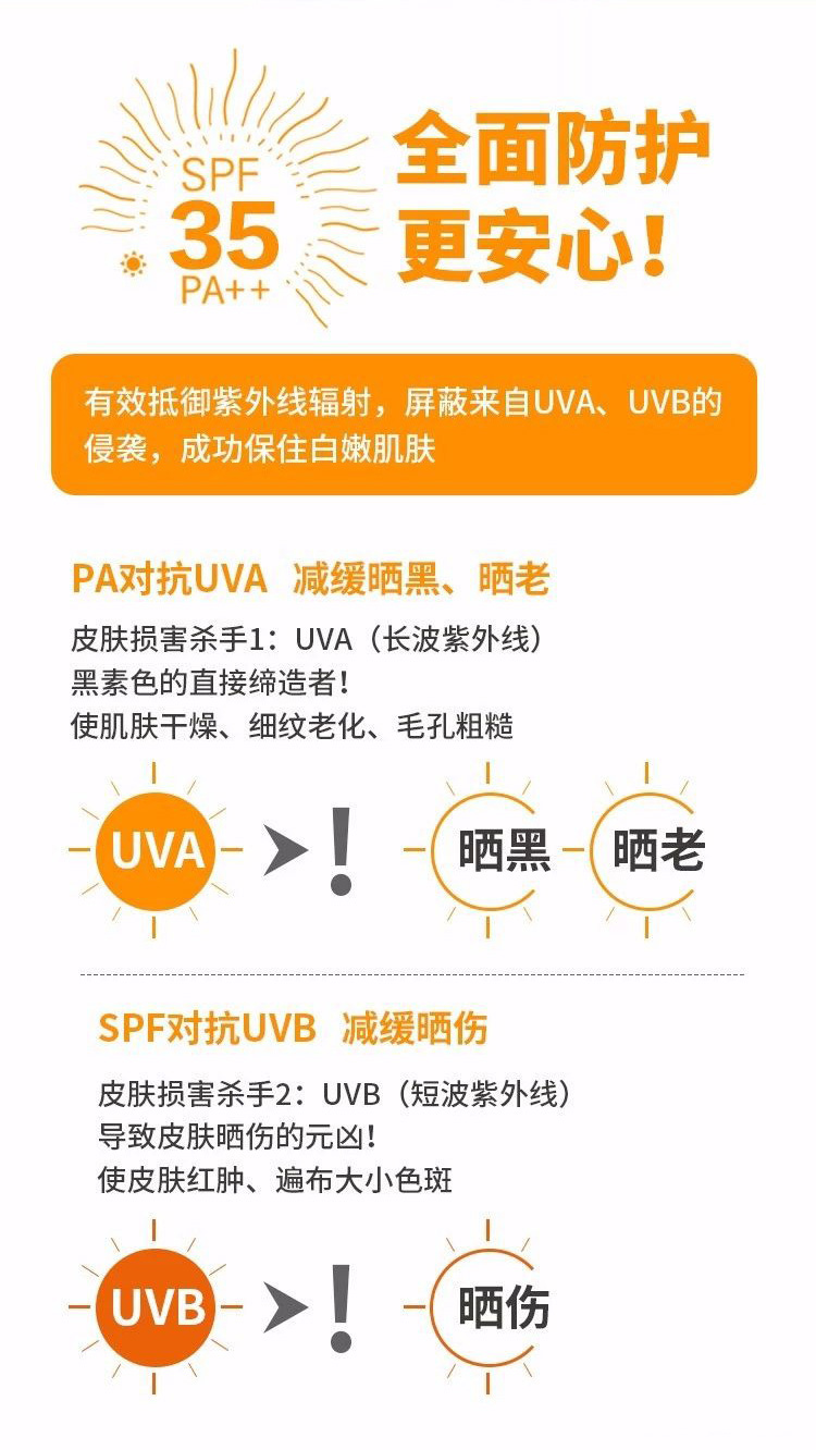 秀丽媤防晒霜spf值多少:35PA++,阻断紫外线带来的伤害。
