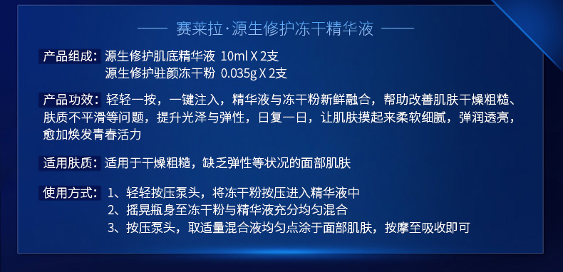 赛莱拉(SALIAI)暨南生物源生修护冻干精华液2支(10ml+0.0035g*2)