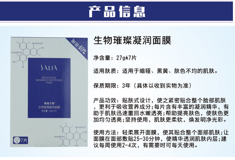 赛莱拉(SALIAI)暨南生物生物璀璨凝润面膜7片/盒