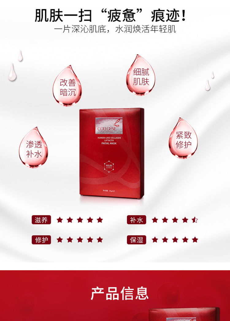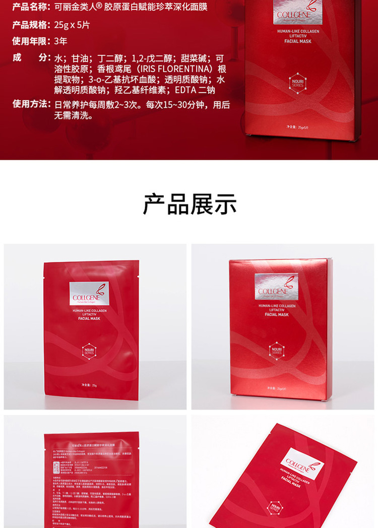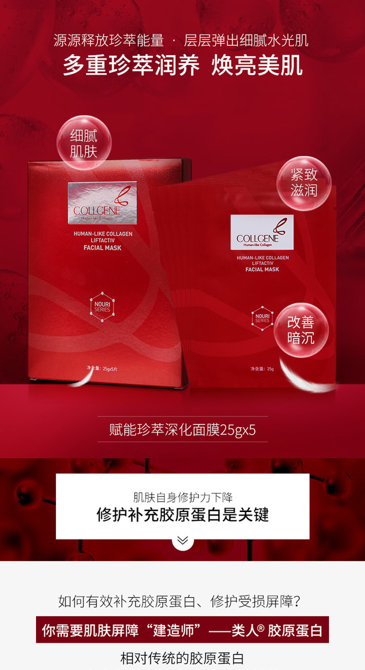 可丽金(COLLGENE)类人胶原蛋白赋能珍萃深化面膜25g*5片