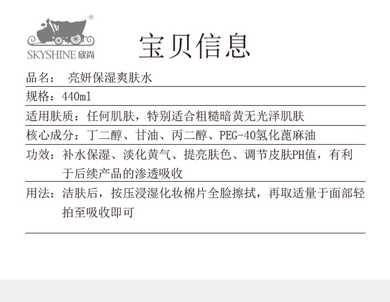 欣尚(SKYSHINE)亮妍保湿爽肤水440ml