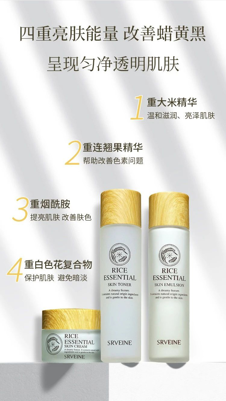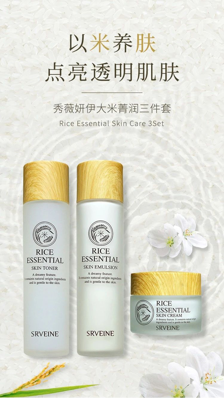 秀丽媤大米护霜三件装,秀薇妍伊大米菁润柔肤水,温和清爽配方,添加多种保湿营养成分、水解大米蛋白、稻糠油、水解透明质酸萃取精