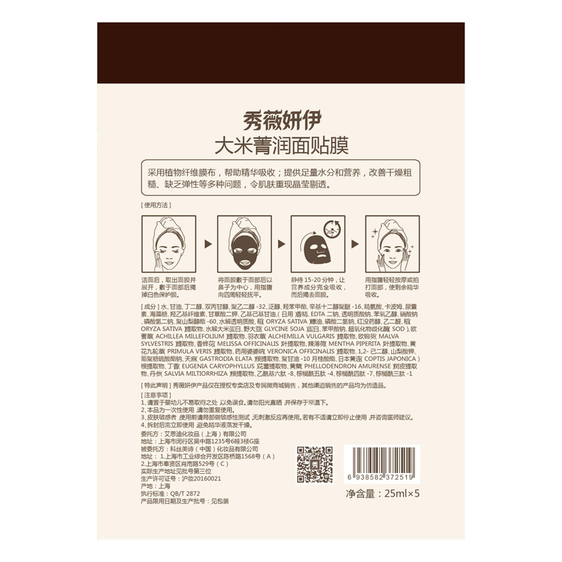 秀丽媤(SOL:RX)秀薇妍伊大米菁润面贴膜25ml*5片