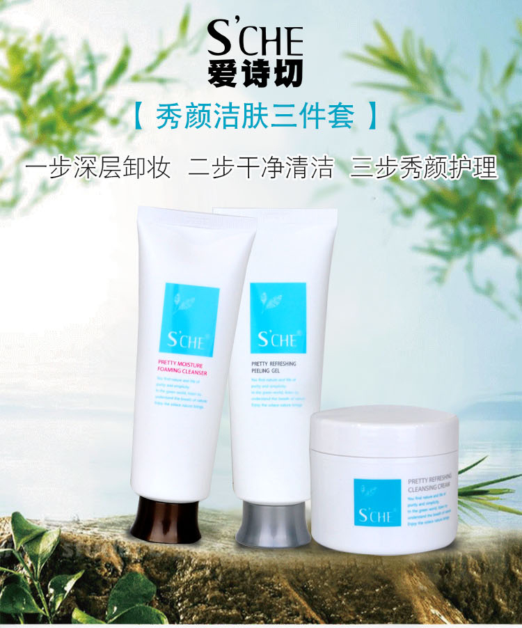 熊津爱诗切(SCHE)秀颜洁肤三件套洗面奶洁容霜去角质(内赠水乳小样)