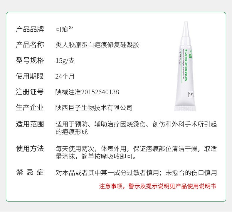 可痕类人胶原蛋白疤痕修复硅凝胶15g