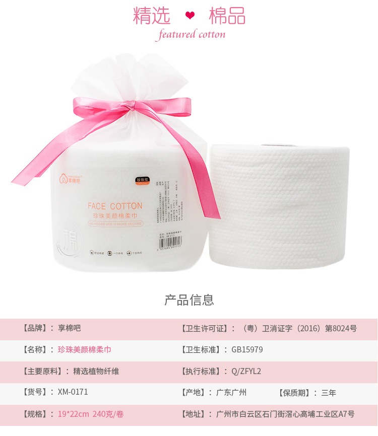 纯棉珍珠美颜绵柔洁面巾80抽(美容院专用)