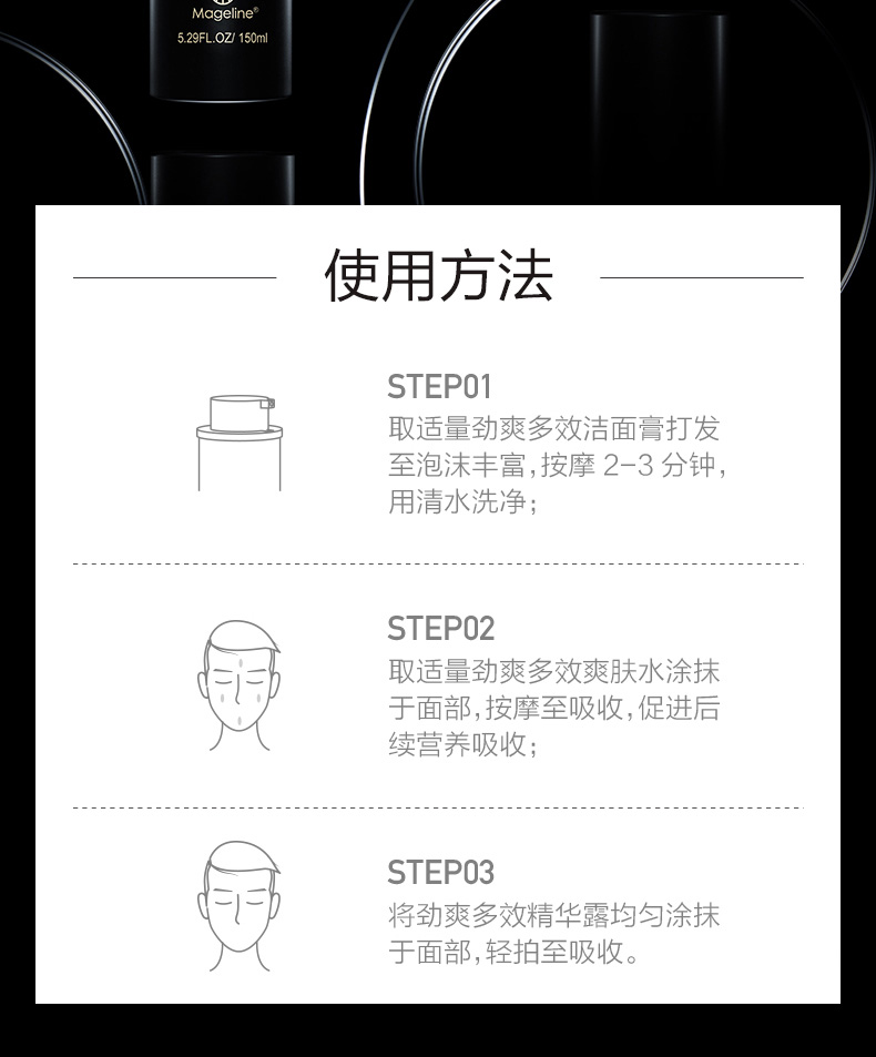 麦吉丽(Mageline)男士劲爽多效护肤套装(3件套)