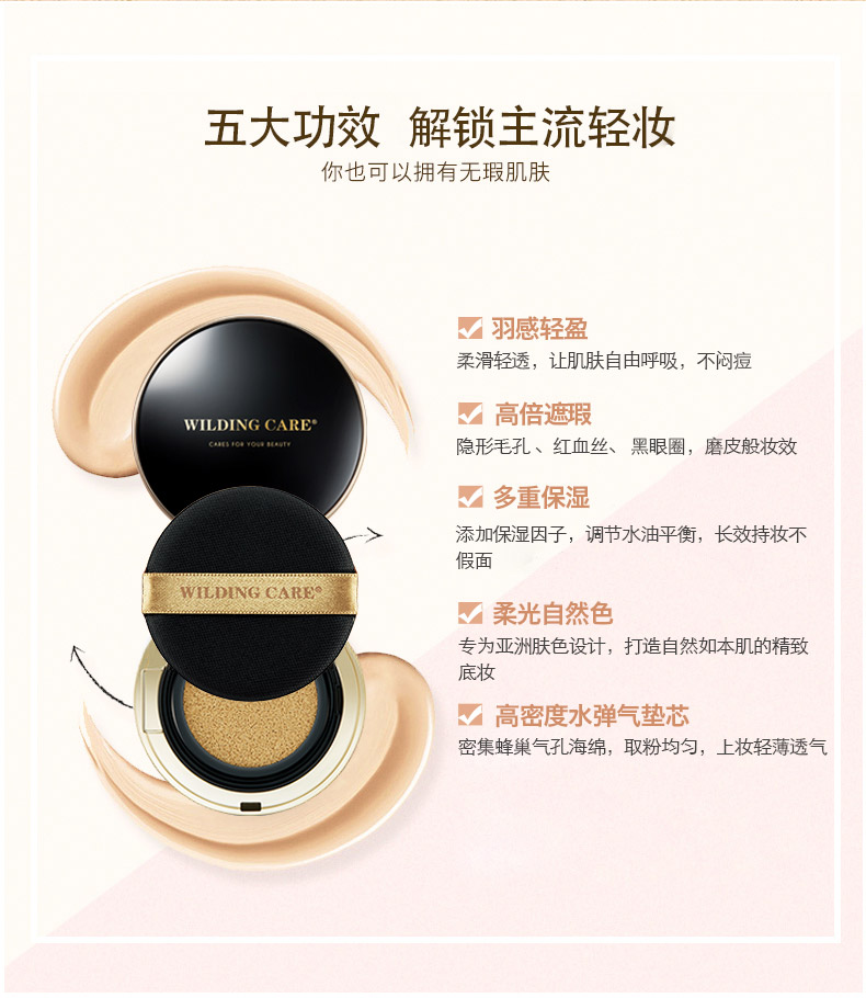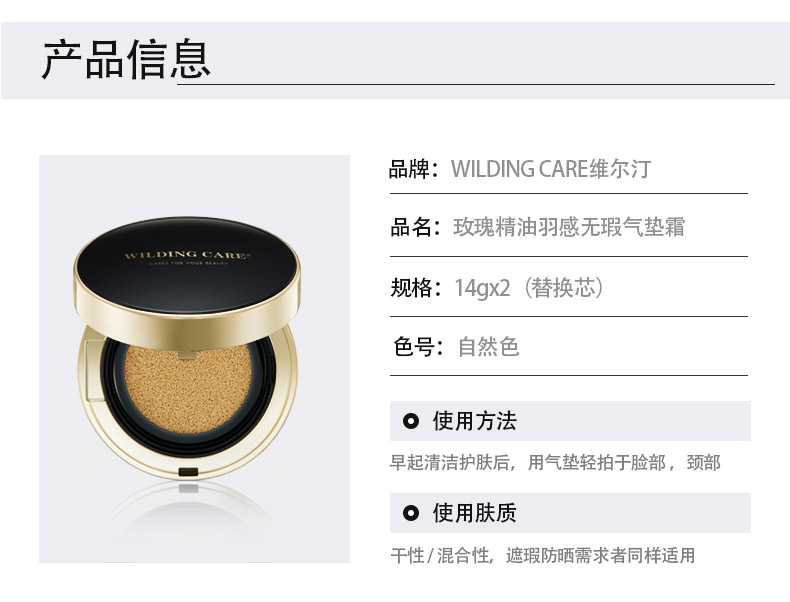 维尔汀(WILDING_CARE)玫瑰精油羽感无瑕气垫霜14gx2
