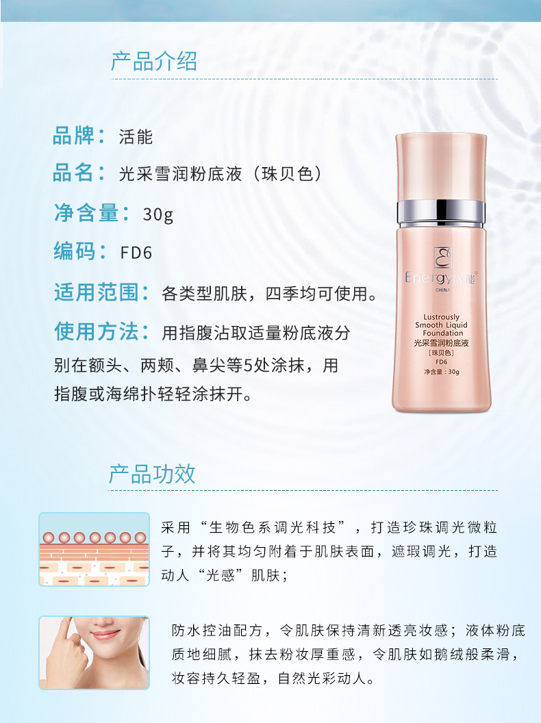 活能(Energy)活能光采雪润粉底液(珠贝色)30g