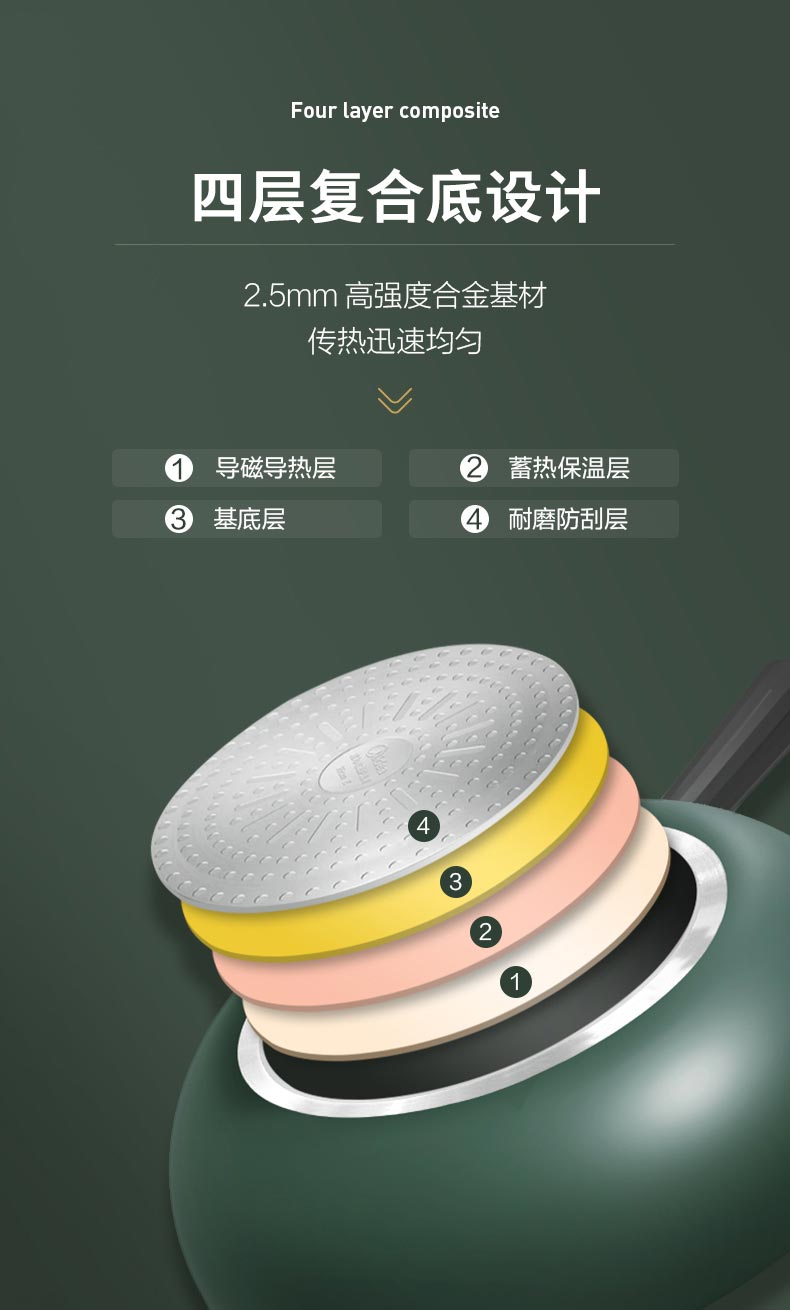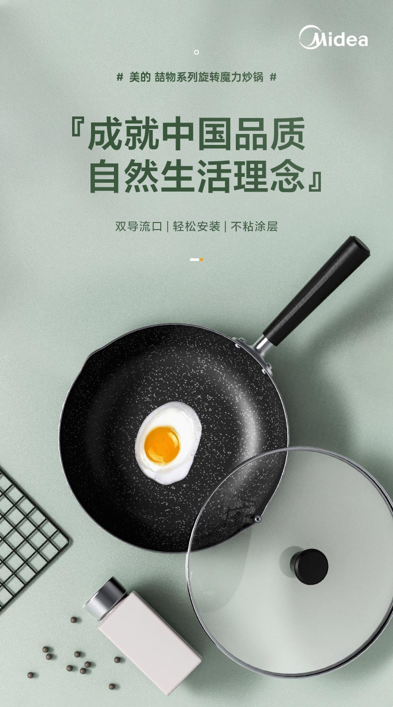 美的喆物麦饭石色不粘锅炒锅24cm