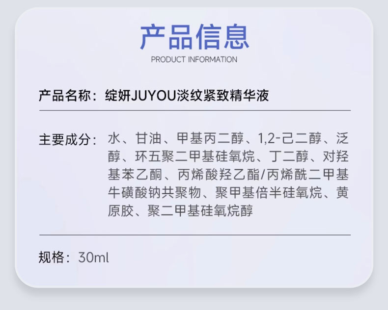 绽妍(JUYOU)淡纹紧致精华液30ml(小银瓶)