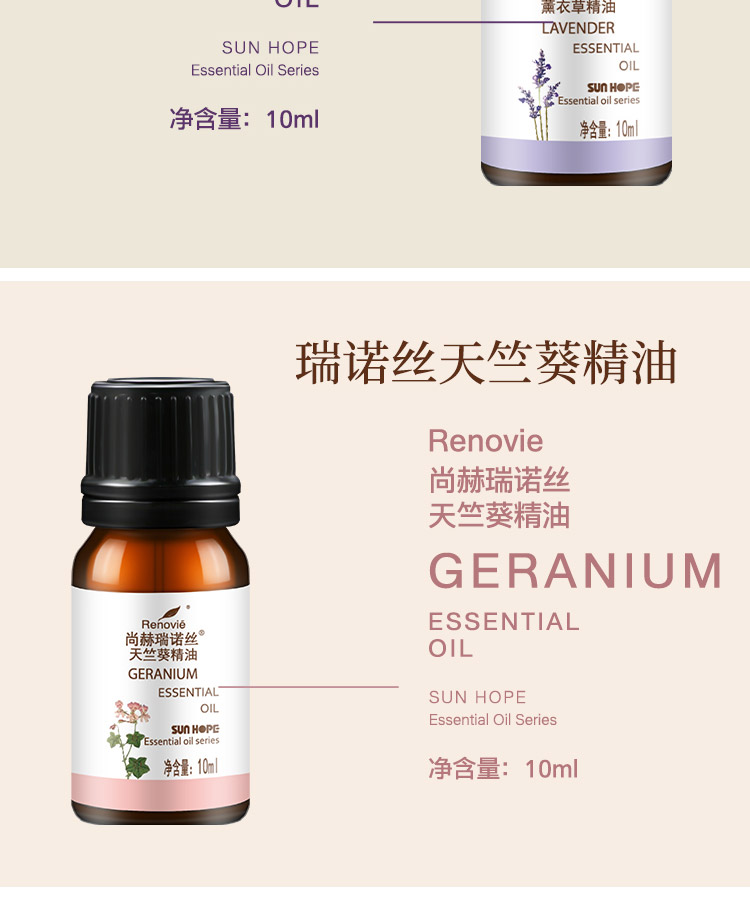 尚赫(Sun_hope)尚赫瑞诺丝茶树精油10ml 天竺葵 薰衣草 迷迭香