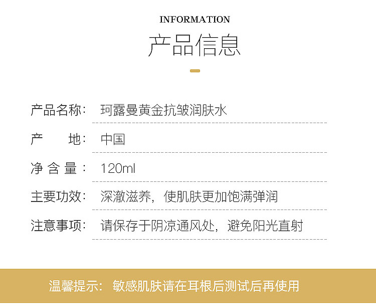 新生活(New_Life)珂露曼晶钻黄金抗皱润肤水120ml