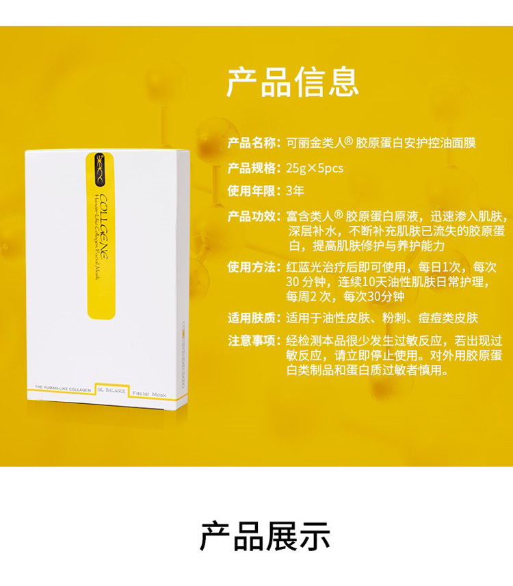 可丽金(COLLGENE)类人胶原蛋白安护控油面膜