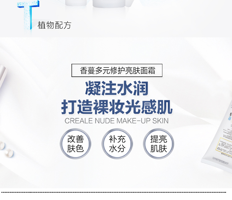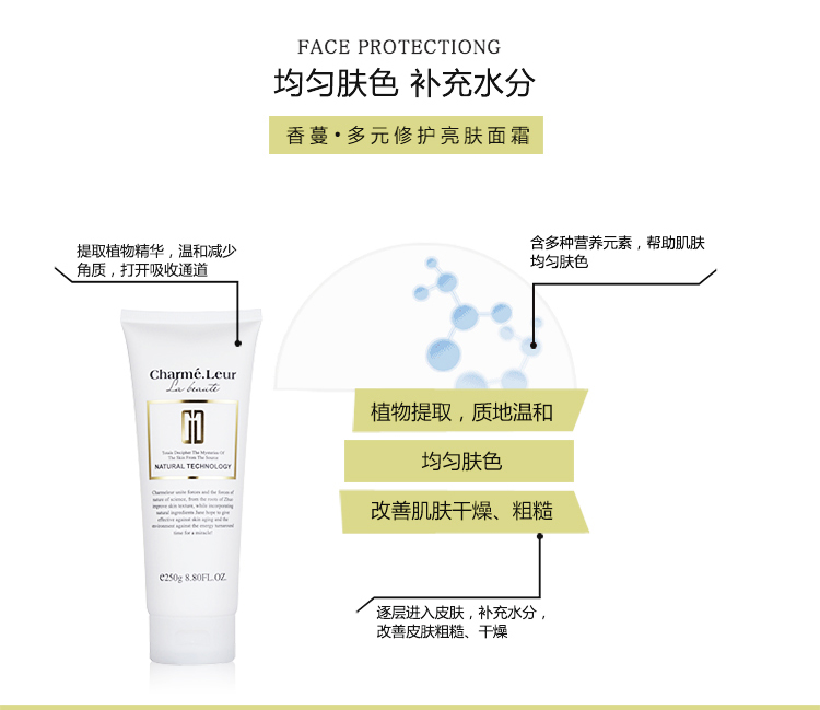 作用:修护靓肤配方,帮助均匀肤色,海藻提取物提供肌肤所需的水分和营养,改善肌肤干燥、粗燥现象。保持肌肤滋养健康。